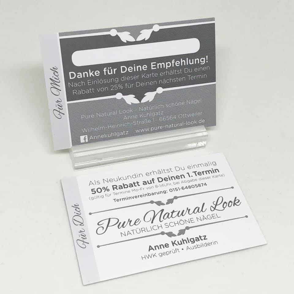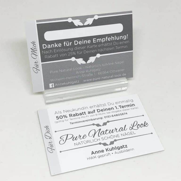 8. May 2019 960 × 960 Referral card / Customers recruit customers / Gift card with liquid gold or silver