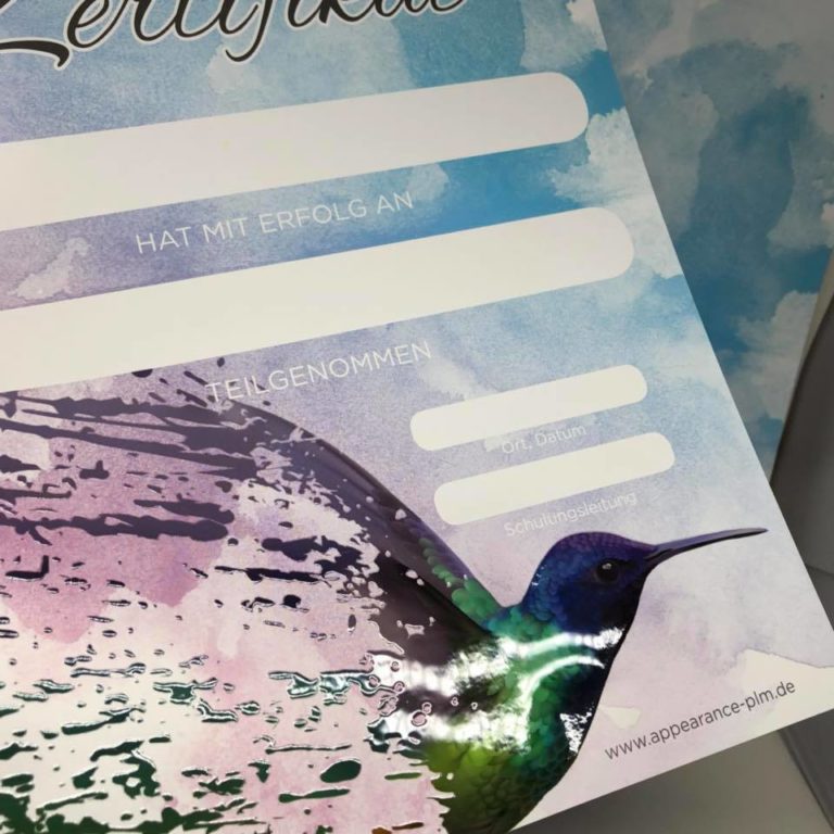 appearance_zertifkat_mit_lack 14. February 2018 960 × 960 Exclusive certificate / training certificate with paint details / clear coat