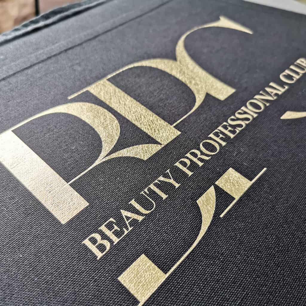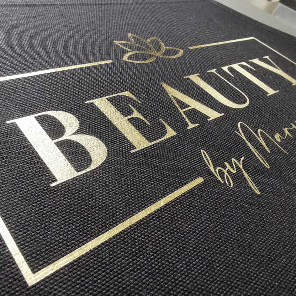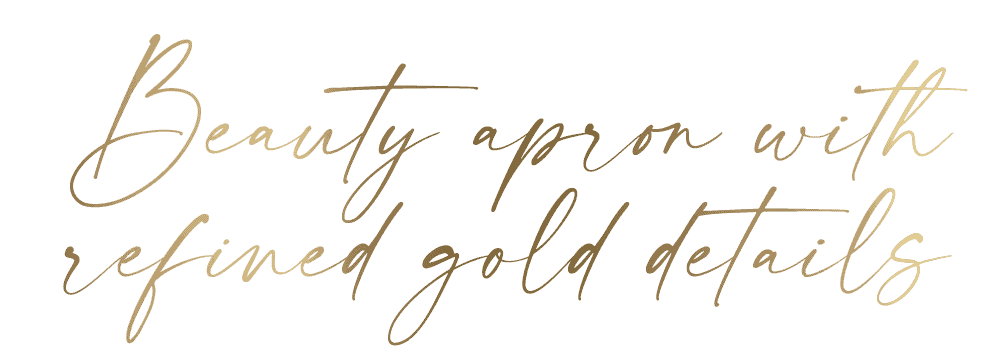 High-quality black canvas (280g quality !!!) apron – embellished with your logo in bright gold / bright gold white – in one size (size approx.: H 90 cm x L 76 cm)