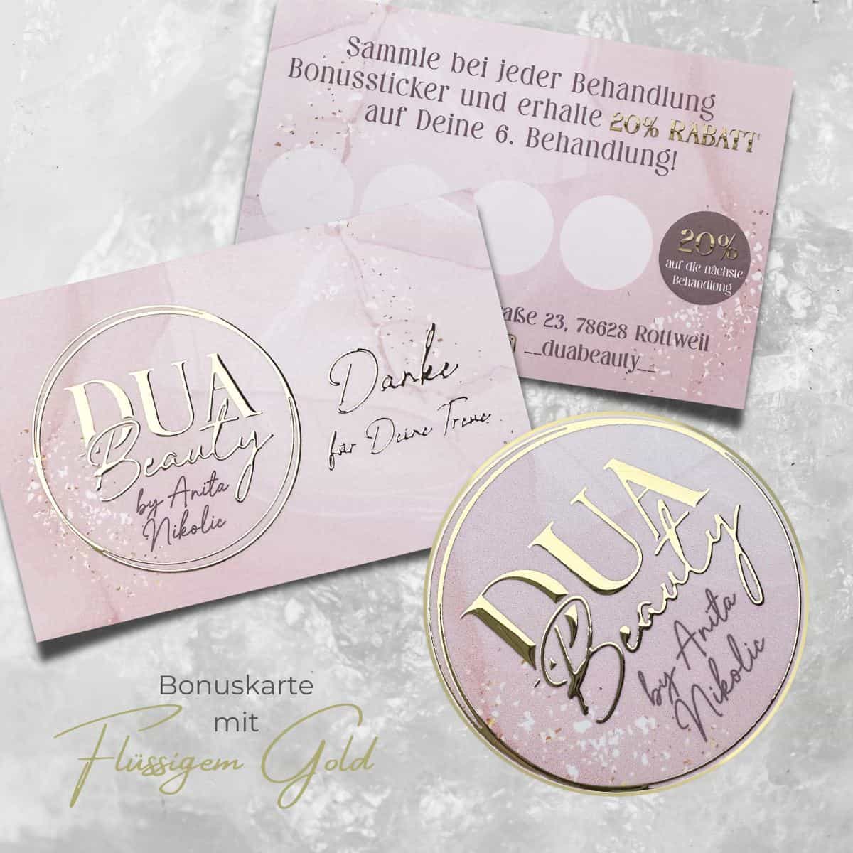 The bonus card, which is the size of a business card, is completely personalized for you with your individual logo or lettering on the front and your desired data on the back.