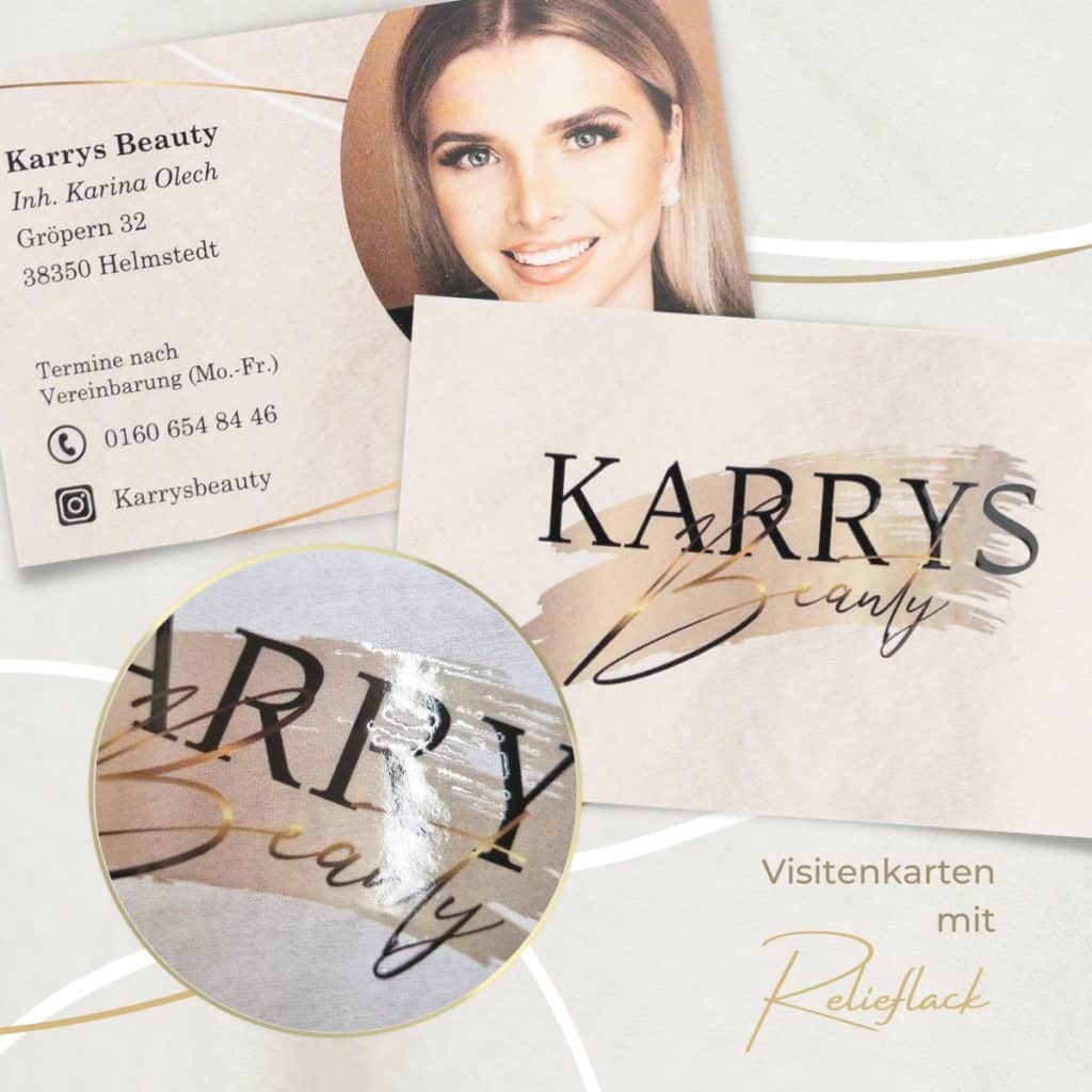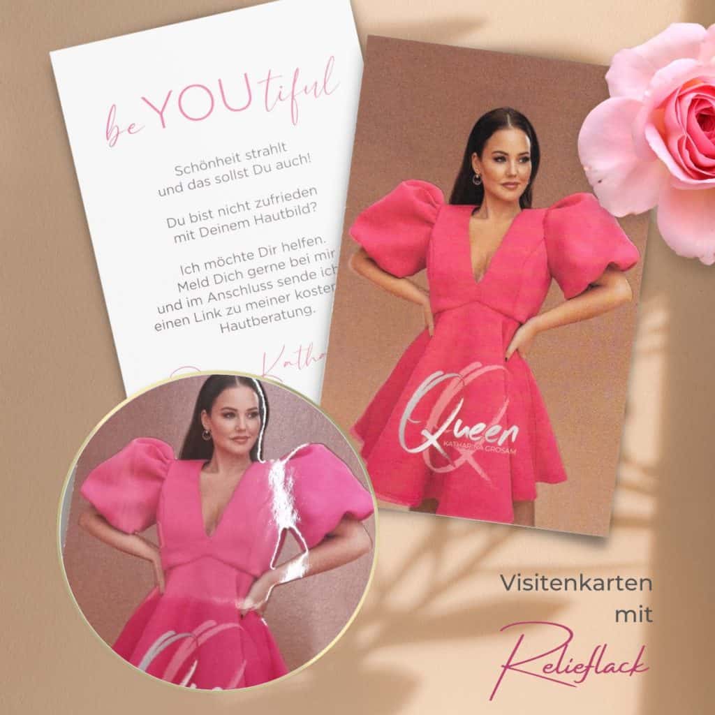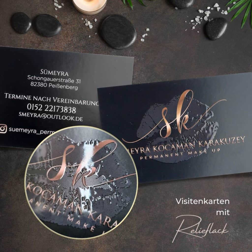 - Customized business cards are printed on both sides and have a particularly elegant lacquer finish on the front