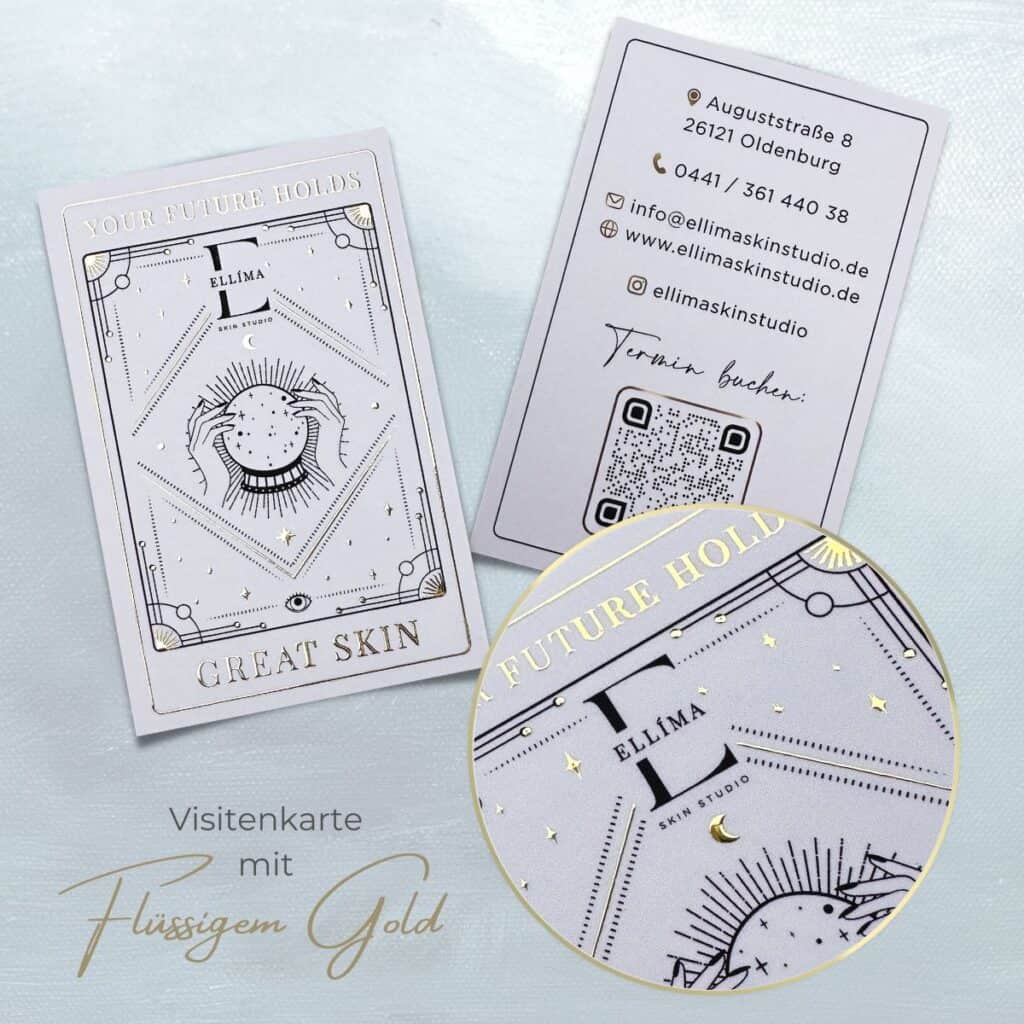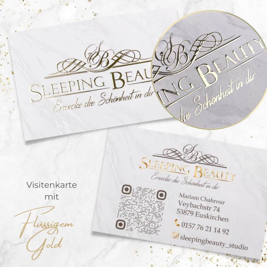 EXCLUSIVE business cards with liquid gold or liquid silver finish – a “3D varnish effect” with an unbelievably beautiful shine – you can’t get more NOBLE than that!