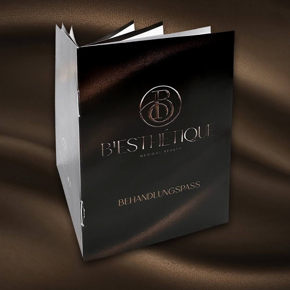 Hand out this exclusive flyer with a liquid gold or liquid silver finish to potential new customers and make them happy with this elegant handout. Whether it’s a flyer for cosmetics, your PMU treatments, pedicures, teeth whitening or other beauty treatments, your customers will be immediately impressed by the individual design and first-class quality.