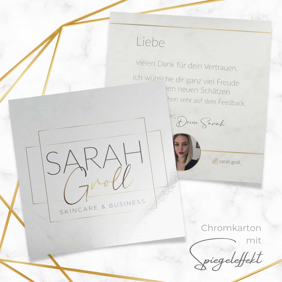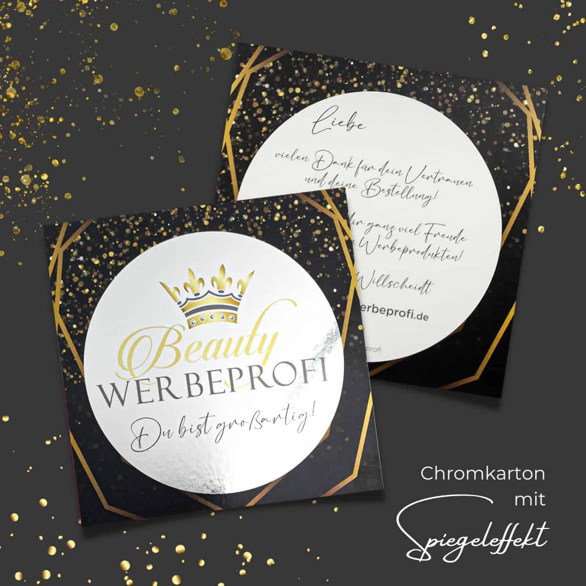 Your cosmetic customers will appreciate your thank-you note that you send them after a successful treatment. Remember: advertising is the be-all and end-all! And with the chrome mirror effect, your customers will see themselves reflected on the flyer after each treatment with the excellent result.
