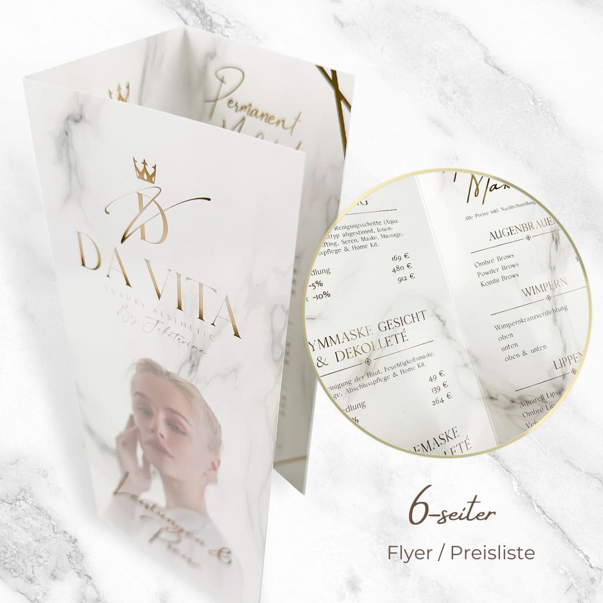 Especially in the beauty industry, extravagance and glamor are a visible sign of success. Join the ranks of those who use particularly high-quality and sophisticated marketing tools with your lash lifting studio or skin consultation.