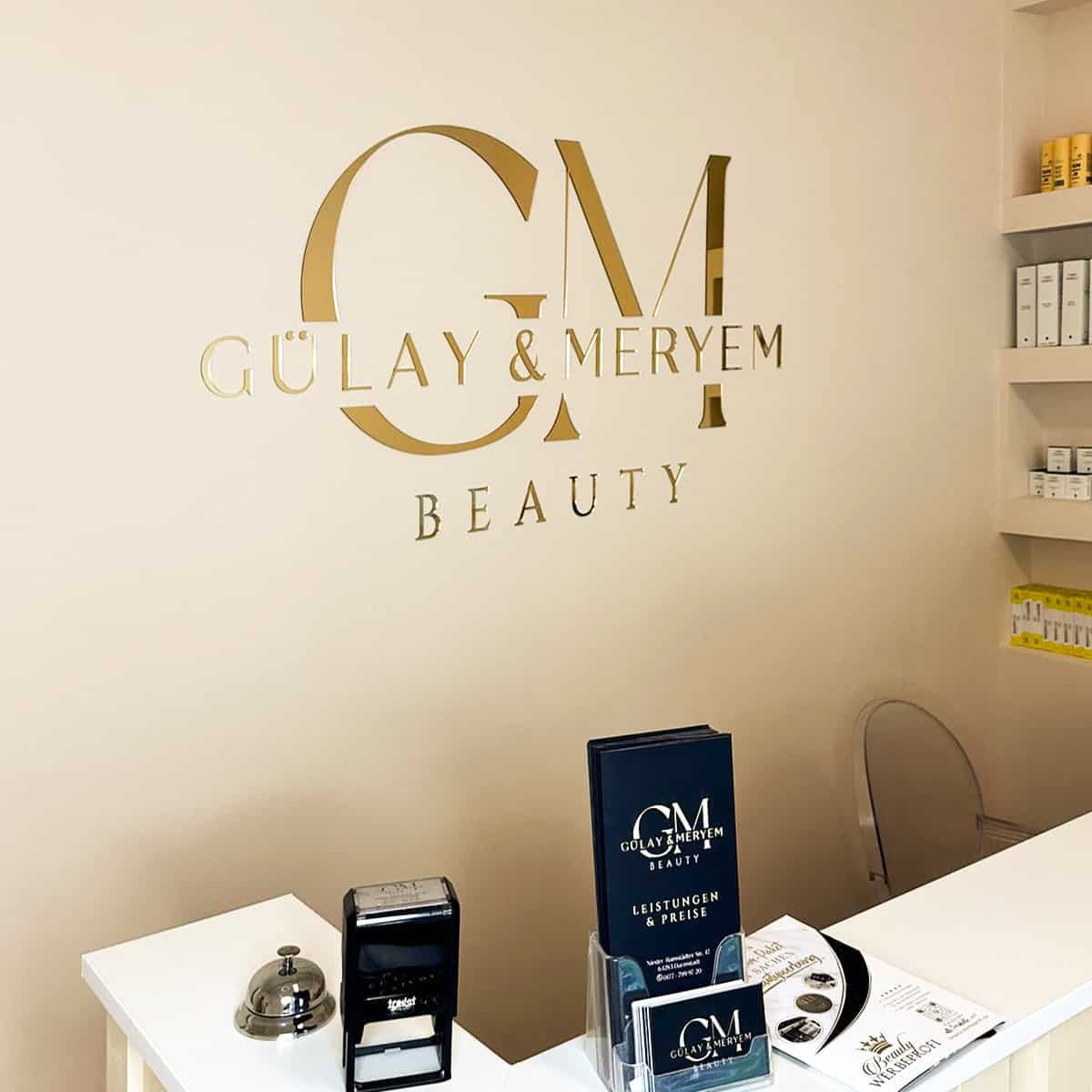 Gold and silver stand for success, triumph and luxury. Paired with a beautiful reflection, you can play in the master class with your individual lettering, initials or logo. Imagine the premises of your beauty salon, your eyelash studio or your nail salon with your wall logo: your shiny, mirrored logo in gold or silver or lettering in gold letters is the most sophisticated eye-catcher you could wish for. We will be happy to advise you and find the right unique piece for you!